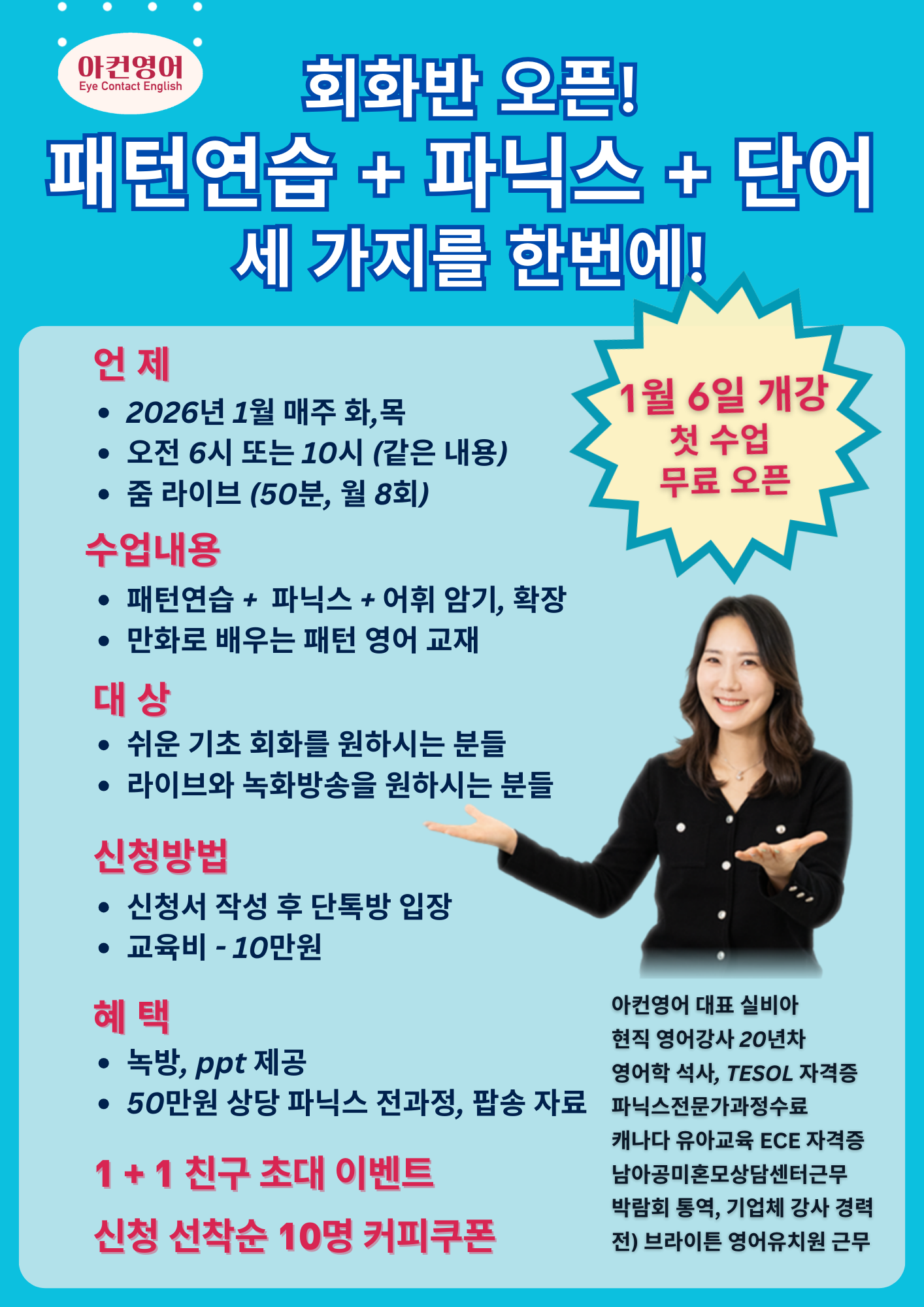 아컨영어 회화반 신규 오픈 안내